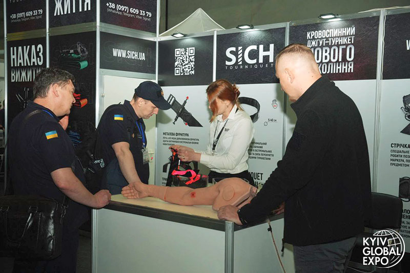 The stands of the companies SICH Ukraine, Pharm Helper, Artan Training Center, the Association of First Aid and Tactical Medicine Operators and Instructors, and the Desniansky District Organization of the Ukrainian Red Cross Society in Kyiv attracted the attention of visitors from all over Ukraine‑primarily firefighters, rescuers, police officers, emergency medical specialists, and occupational safety professionals.