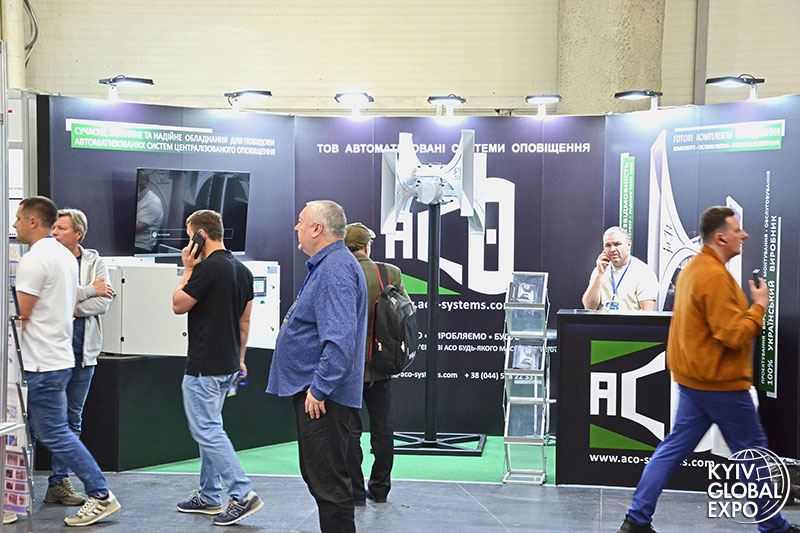 Automated centralized emergency notification systems were showcased at the booths of NVP OZONE‑S, Civil Protection Consortium, AUTOMATED NOTIFICATION SYSTEMS, and Ukrtranszvyazok.