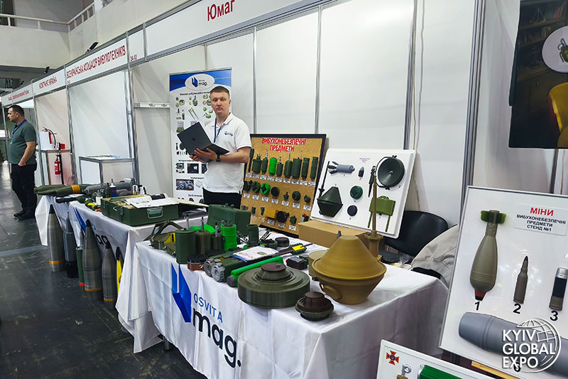 In addition to large demining equipment exhibits, the fields of mine safety and sapper equipment were represented by companies such as DAMINER; DIGITAL AND ANALOG SYSTEMS (distributors of world‑renowned mine detectors Minelab, Garrett, Foerster); U‑MAG (developer and manufacturer of specialized models of explosive devices); the ALL‑UKRAINIAN ASSOCIATION OF EXPLOSIVE TECHNICIANS; UKRAINIAN ARMOR; and the KHARKIV PLANT OF PERSONAL PROTECTIVE EQUIPMENT.
